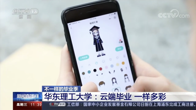 6月24日,央视新闻频道“新闻直播间”栏目聚焦高校以一系列精彩创意,让这个特殊的毕业季变得多姿多彩。其中,重点报道了华理推出的Q版云端合影活动。
