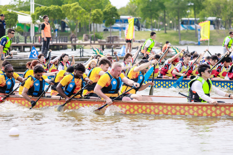 江浙沪皖高校外国留学生通海湖上赛龙舟