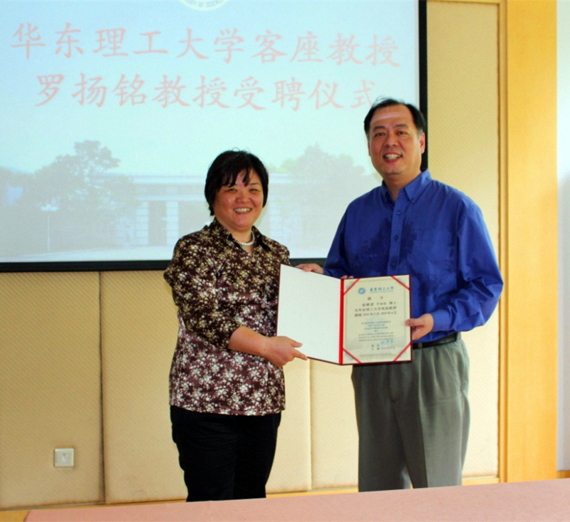 Professor Luo Yangming, an expert of US food processing and security, the chief editor of Food Science and Nutrition and the CEO of Biointellipro Co. USA, was appointed guest professor at East China University of Science & Technology. Presided by Professor Zhao Liming, Vice Dean of School of Bio-Engineering, the appointment ceremony was held at XuiHui Campus, ECUST. Mr. Zhou Yanbo, Deputy Director of ECUST Personnel Department attended the appointment ceremony, and Professor Zhuang Yingping, Dean of School of Bio-Engineering, issued the Letter of Appointment to Dr. Luo Yangming.